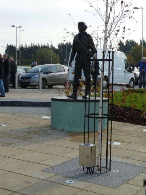 The location of the original memorial was deemed to be an unsafe venue due to this development and outside the supermarket a new memorial garden has been created. The existing monument has been moved into this, along with a new and unique life size bronze sculpture of a WW2 Navy Air Man.